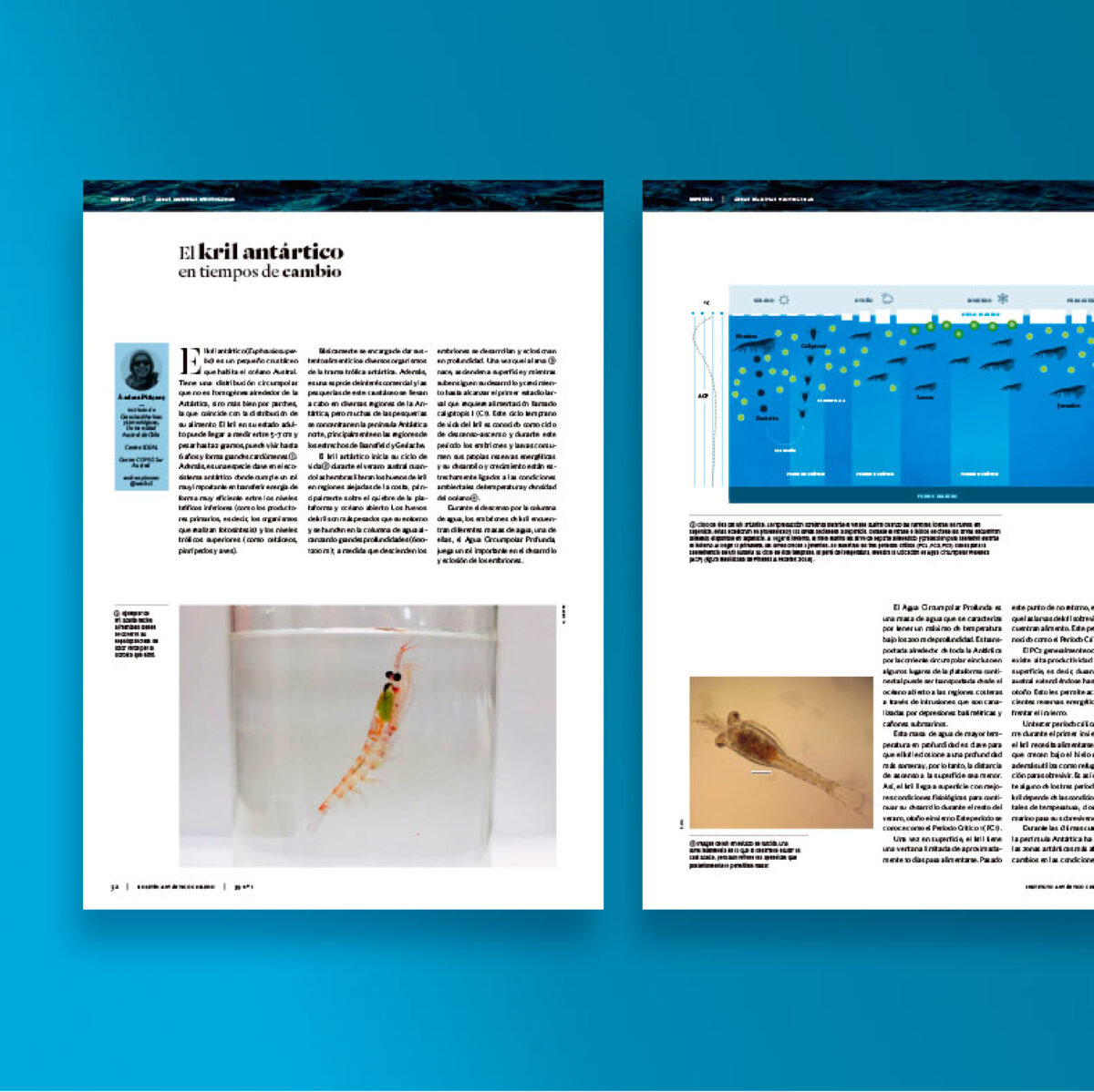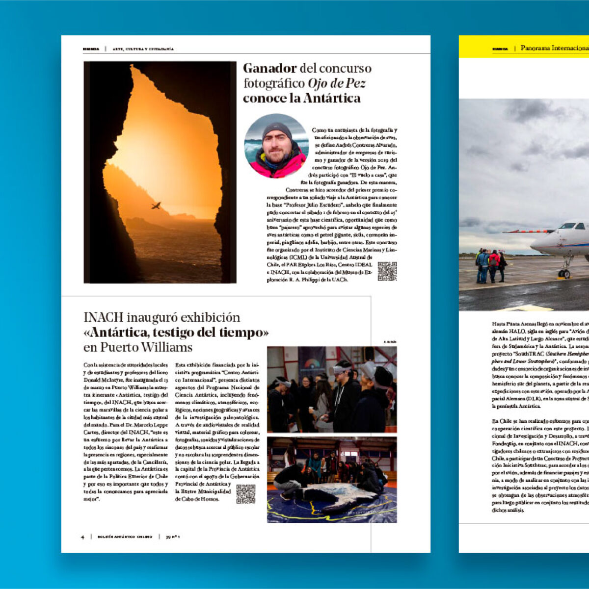 Diseño y diagramación del Boletín Antártico Chileno. Publicación semestral del Instituto Antártico Chileno que tiene como objetivo difundir la investigación mas reciente realizada por científicos chilenos en el continente blanco.