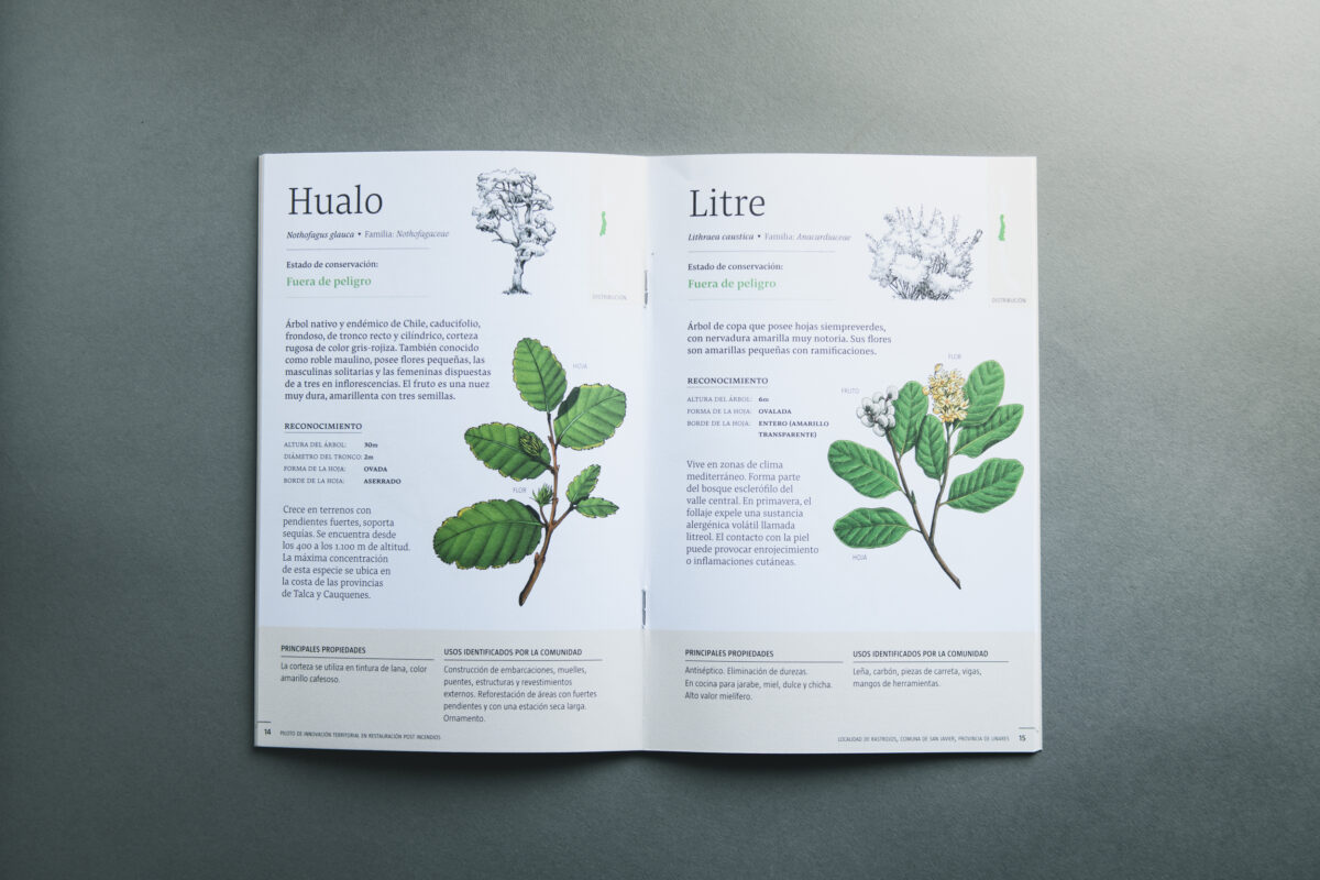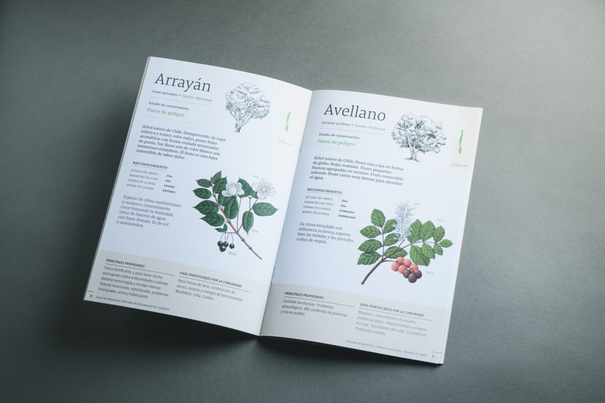 Cuaderno diseñado para ayudar a identificar a la flora nativa y la reforestación de árboles de la localidad de Rastrojos que fue afectada por los incendios forestales del año 2017.